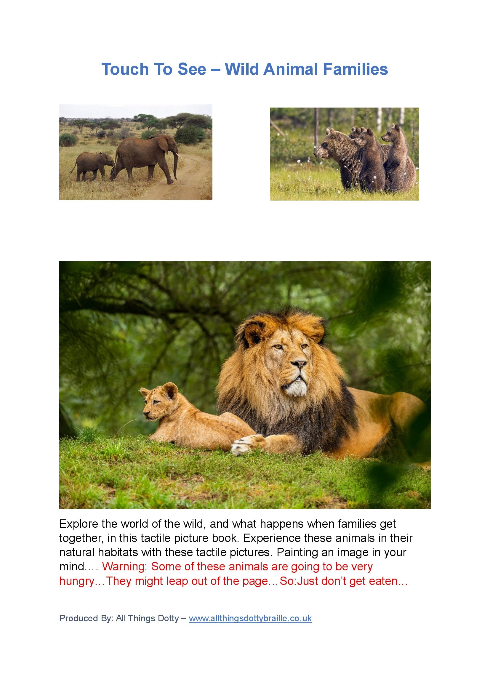 Unlock a WHOLE NEW WORLD of wonders with our new DELUXE range of Colouring Books. Feel every detail with this sturdy, almost indestructable tactile artwork. Just like Braille, run your fingers over the outlines, explore every detail, and build a picture in your head. Plus: sighted people can now see the picture in black and white! These Colouring books have 10 pictures of various wild animal families. You can feel their body, which shows up in great detail — see and feel these animal families like never before...